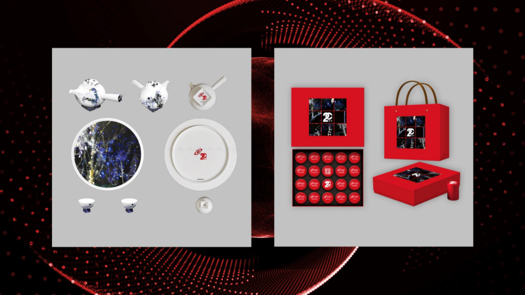 公司为所有20年员工精心准备了一份特殊的礼物。其中,每一盒茶叶的包装上都印着公司未来发展的核心产品及方案,茶叶和茶具礼盒上印的图案是一副名为《黑夜缝隙》的艺术作品,画面中的光就像整个夜空的缝隙,似乎想要撑开或者撕裂黑夜 ,彰显出对现代社会的设问和希冀。以此表达对这些20年员工,为星空(xingkong)昔日辉煌做出的努力的肯定和感谢。长期以来,公司也在关注科技与艺术的融合发展,积极扶持、培养青年艺术家,而这幅作品就是公司合作艺术家庹梦倩所创作。